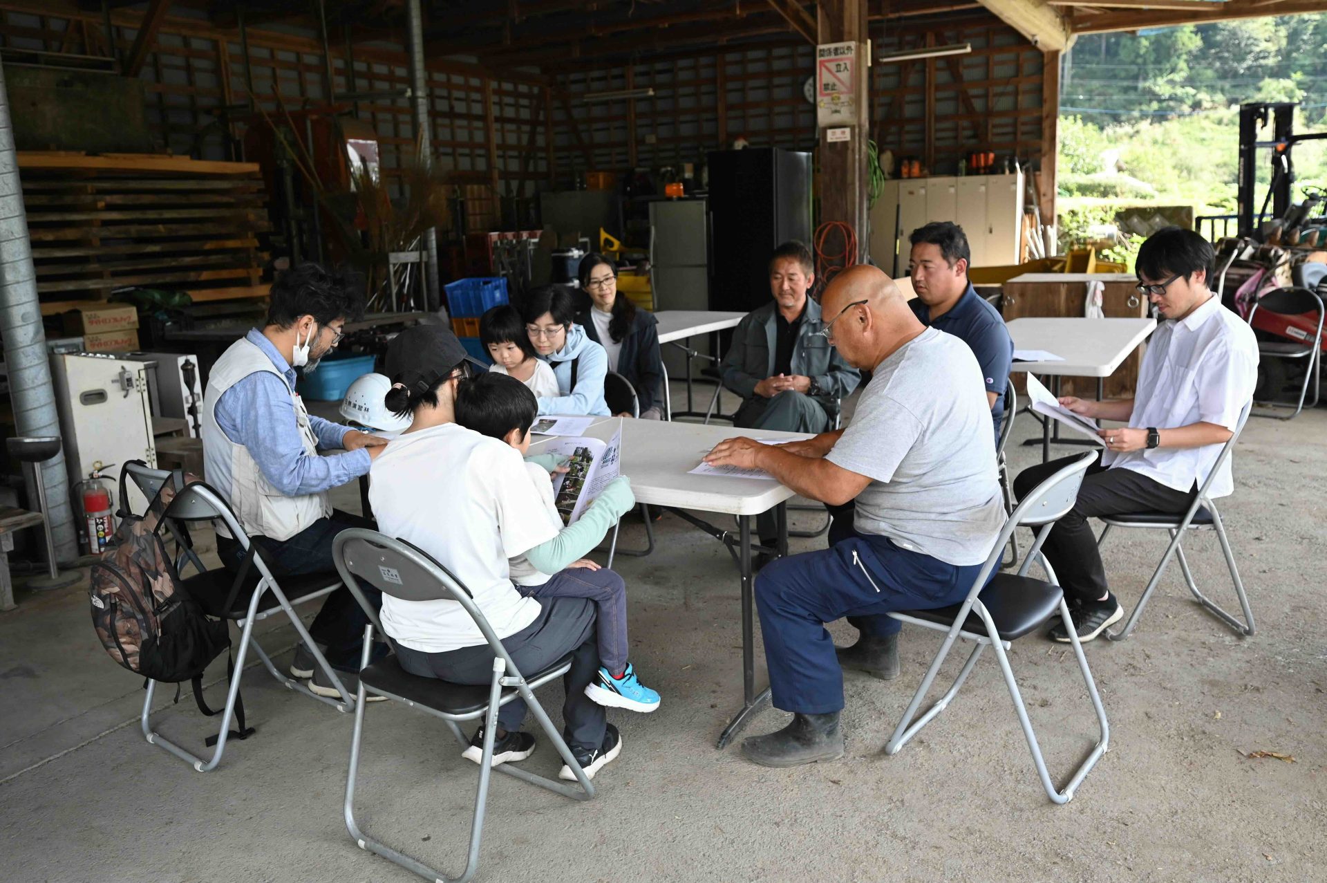 こちらは朝のミーティング。山の話を斉藤社長が直接説明してくれる。