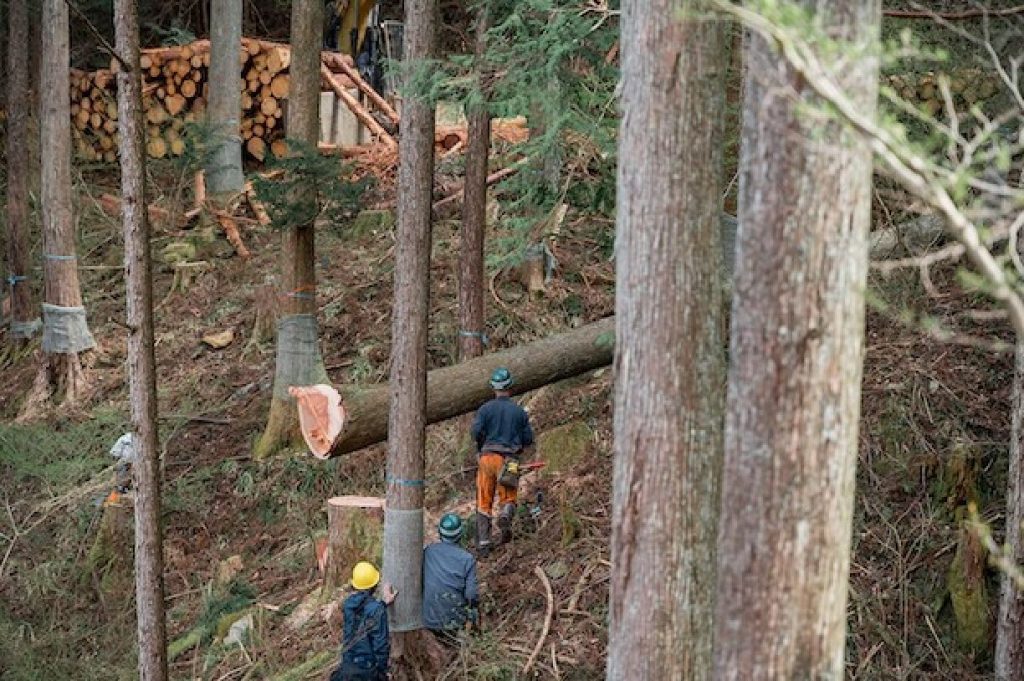 私たちは、国際的な森林管理基準である「SGEC認証」を受けた森林と連携しています。伐採体験を通じて、実際に使用する木のルーツに触れたり、山の環境を体感することができます。