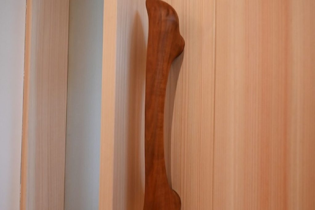 職人の手仕事で丁寧に削り出された木のドアノブは、手に触れるたびに温もりを感じさせてくれます。暮らしの中に自然の優しさを取り入れる、ささやかなこだわりです。