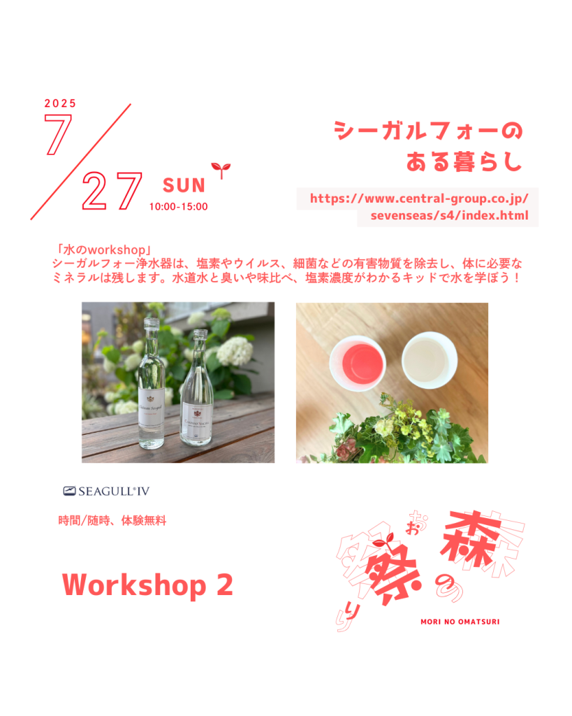 水道水とシーガルフォーの水の匂い比べ、味比べ、塩素の濃度が色でわかるキッドなどを