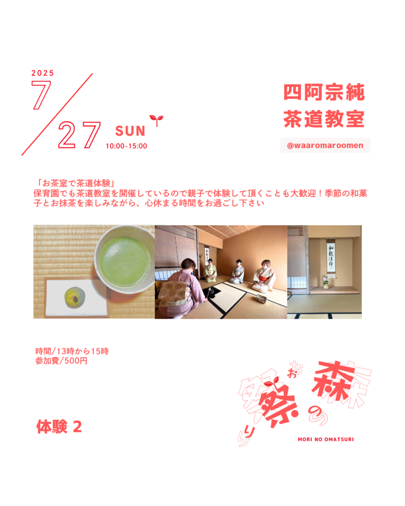 お茶室で茶道体験はいかがですか?保育園などでの茶道教室も開催しているので
