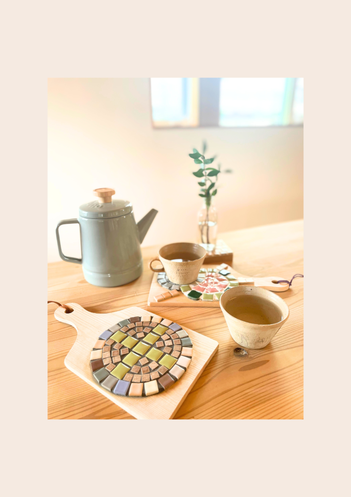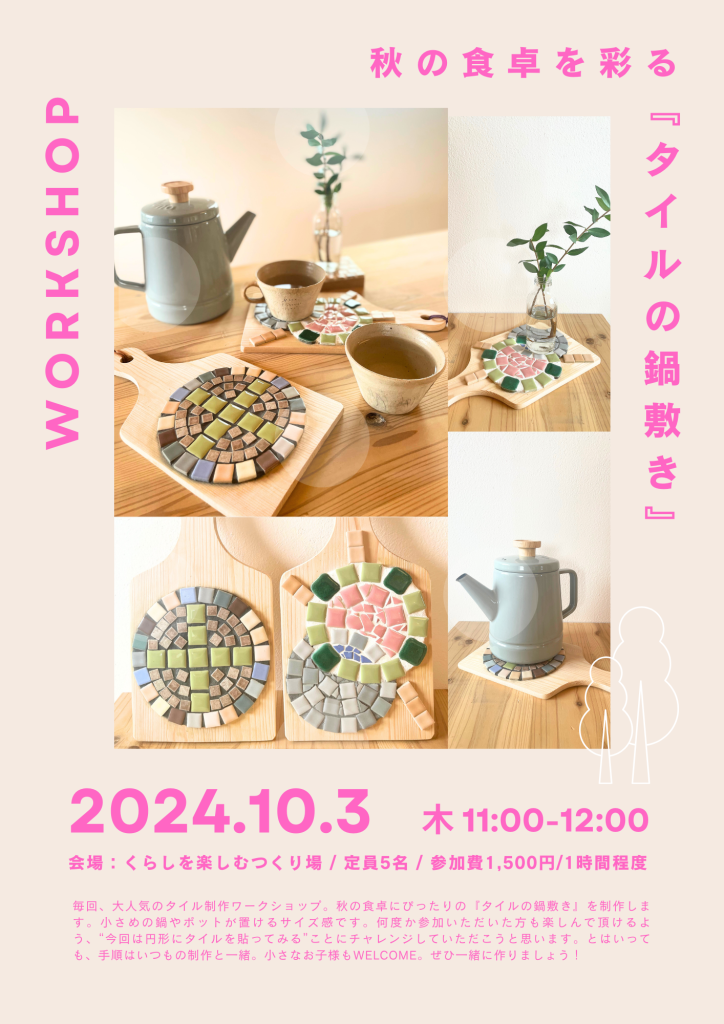 毎回大人気のタイルworkshop。今回は、秋にぴったりの、鍋敷きを作ります。