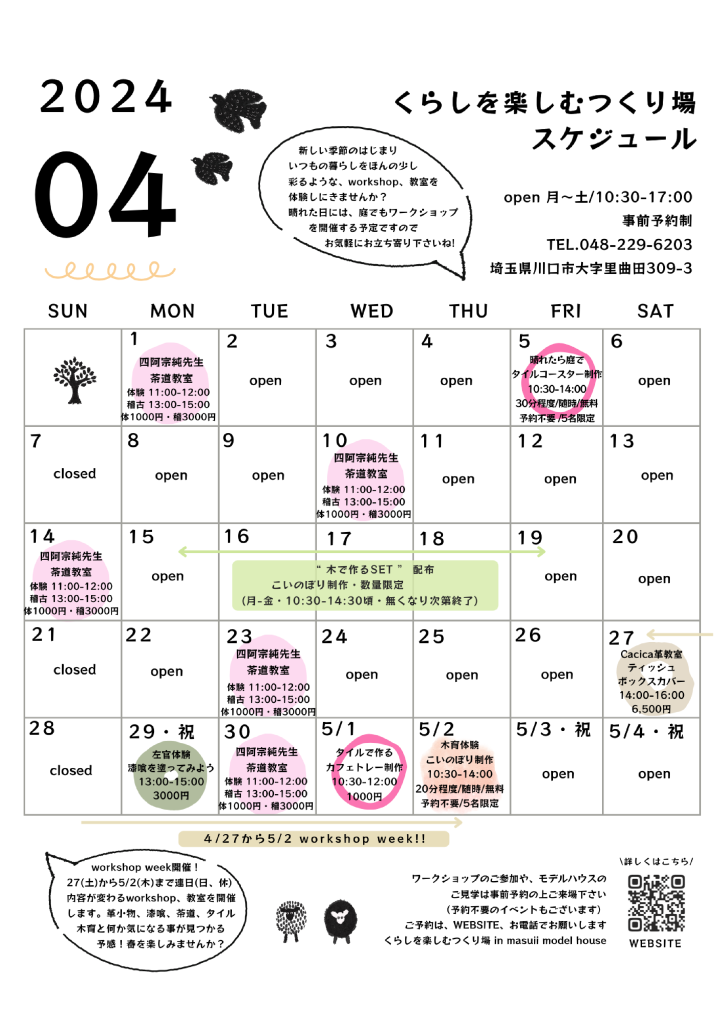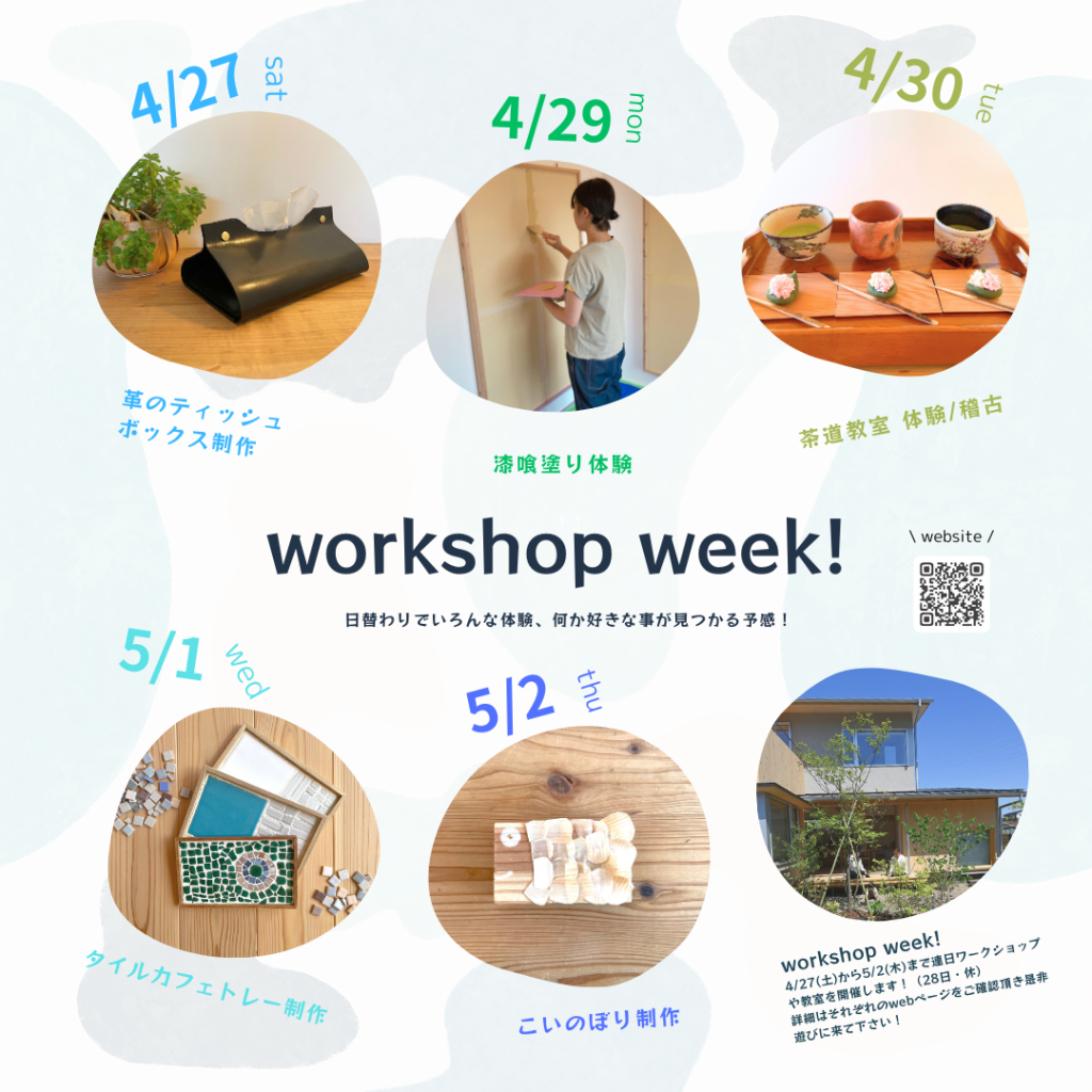 ゴールデンweekより一足お先に、つくり場ではワークショップweekを開催します!