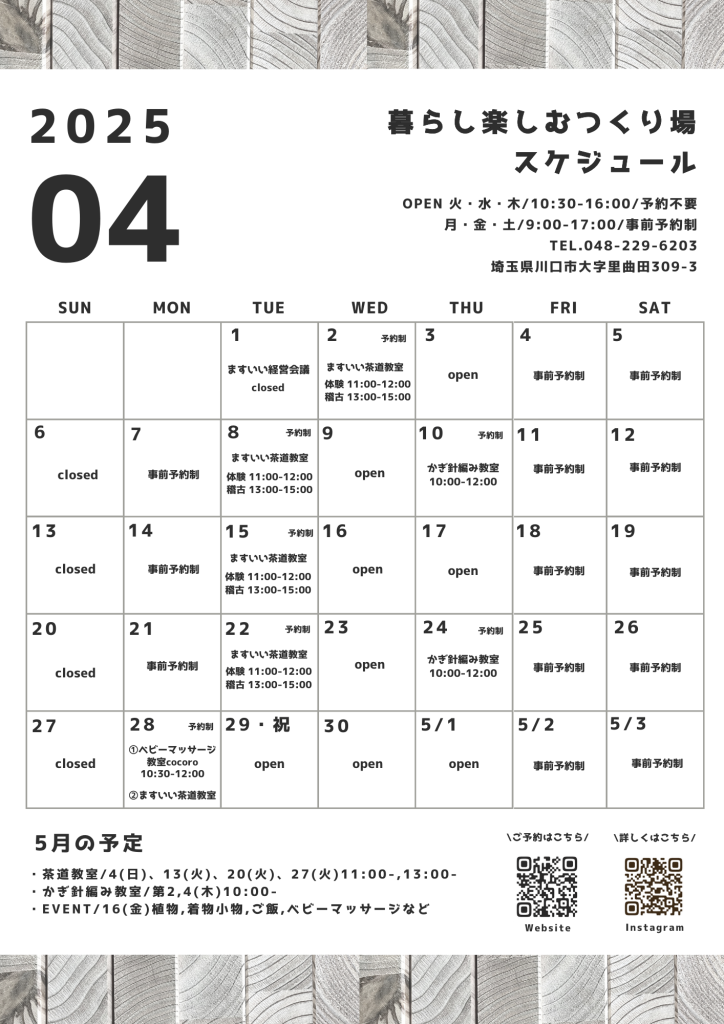 ホーム 暮らしを楽しむ作り場 イベント情報 4月のスケジュール