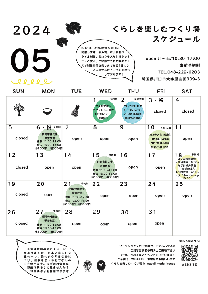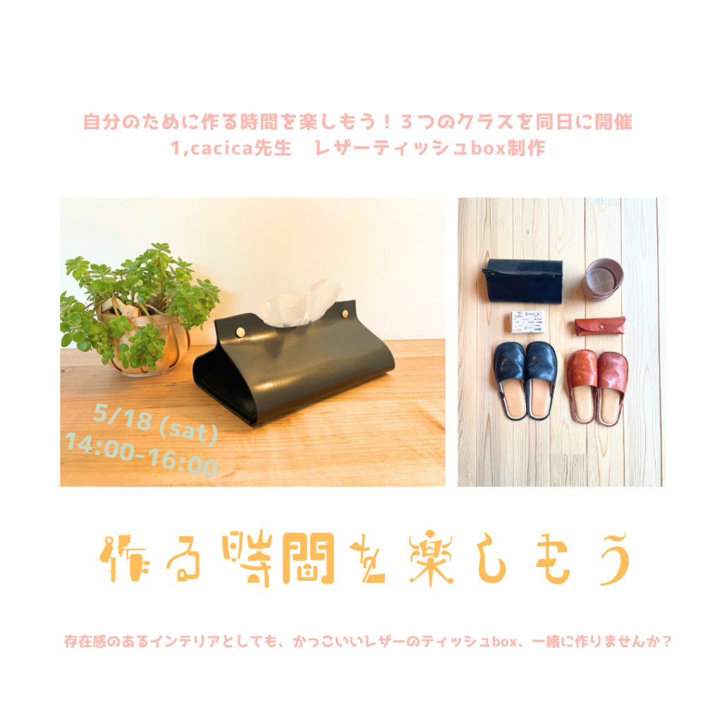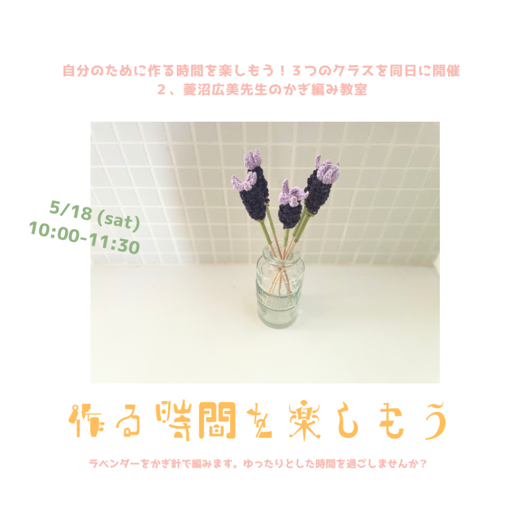 🟣 5月18日(土 )には、3つの教室を同日に開催”作る時間を楽しもう”