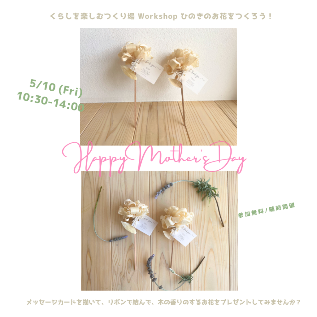 ひのきの香りが香るお花、メッセージを添えてお母さんにプレゼントしてみてはいかがでしょうか?とても簡単15分ほどで作れます。