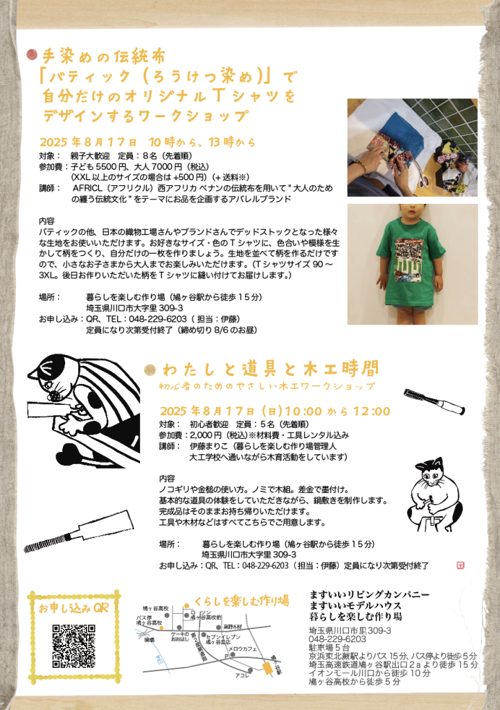 場所: 暮らしを楽しむ作り場(鳩ヶ谷駅から徒歩15分)