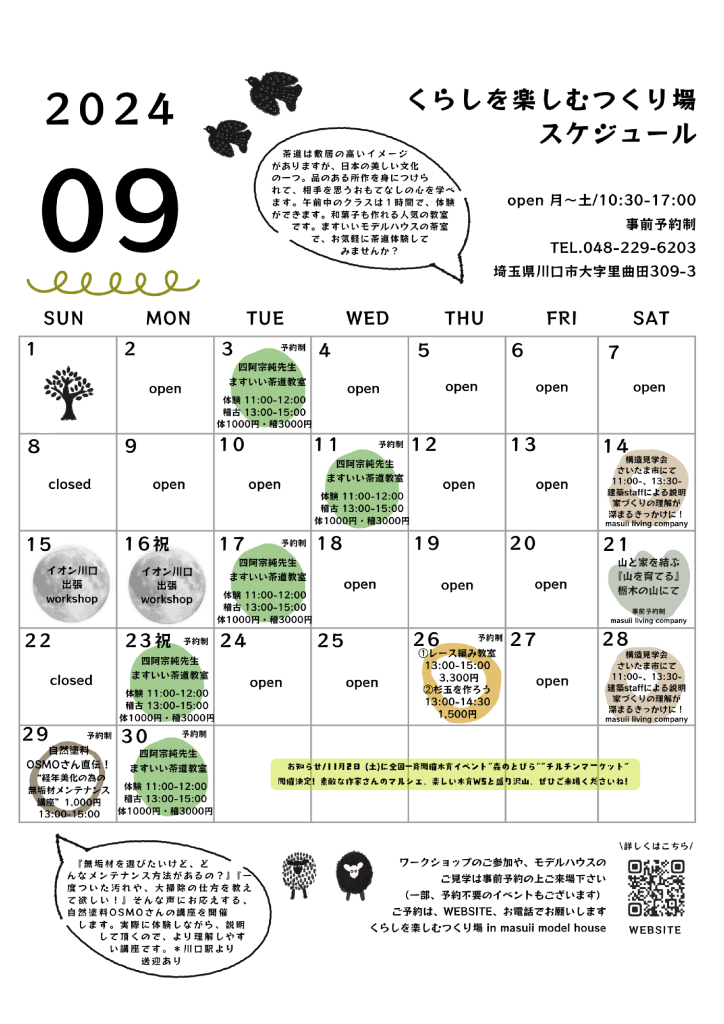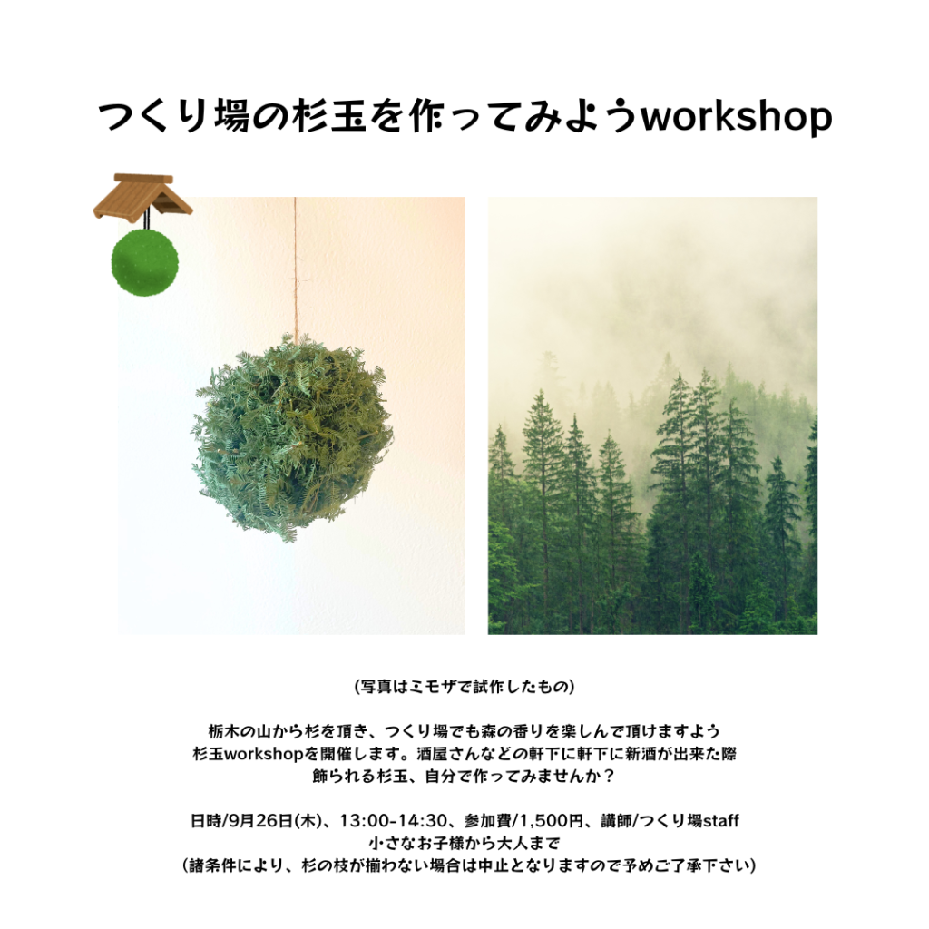 9月も季節を楽しむ教室や、Workshopを企画しました。何か気になるものがございましたら、是非ご予約の上ご参加ください。