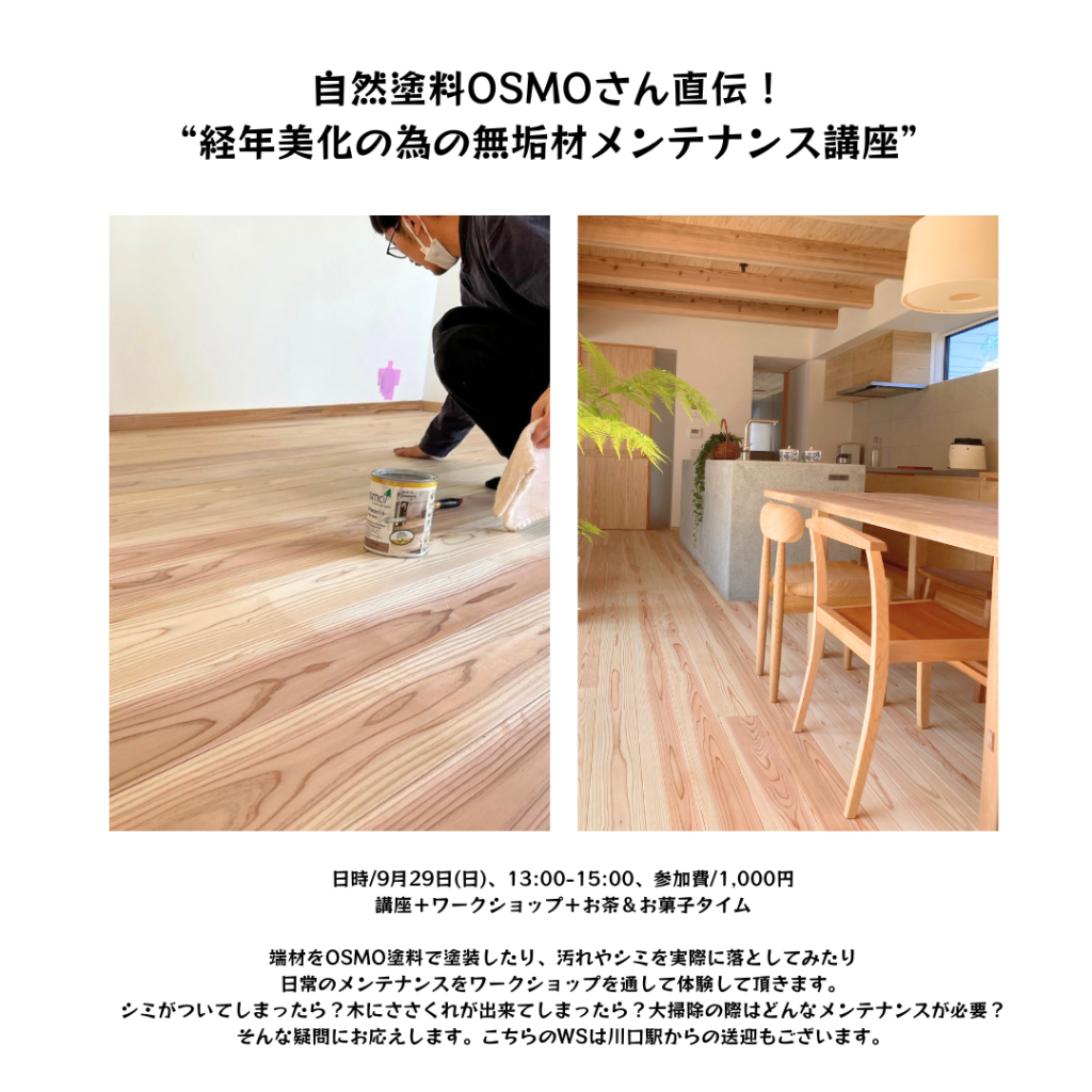 暮らす前も、暮らした後も、無垢材とどうお付き合いすれば良いのかの不安を解消できる講座を開催。