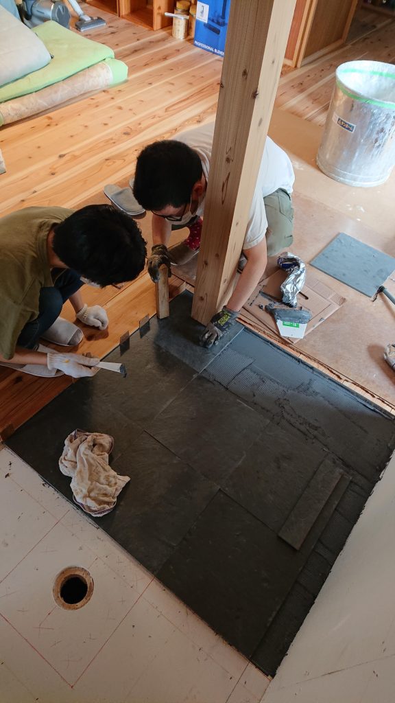 セルフビルド/DIYで家を作る タイル貼り蒔きストーブ床編