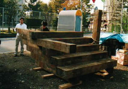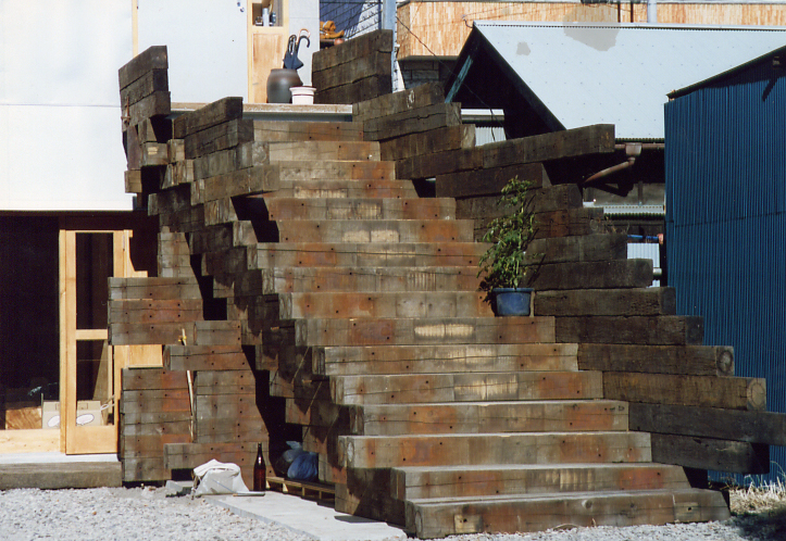 電車の枕木で作る階段のセルフビルド