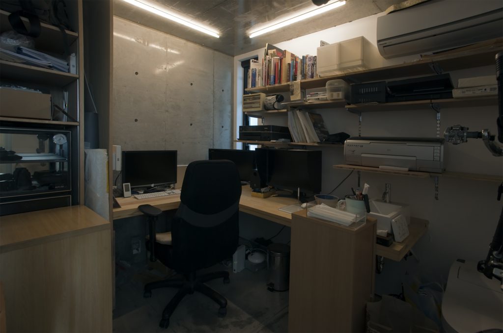 カメラマンとして集中しつつも家族の気配を感じられるワークスペースです