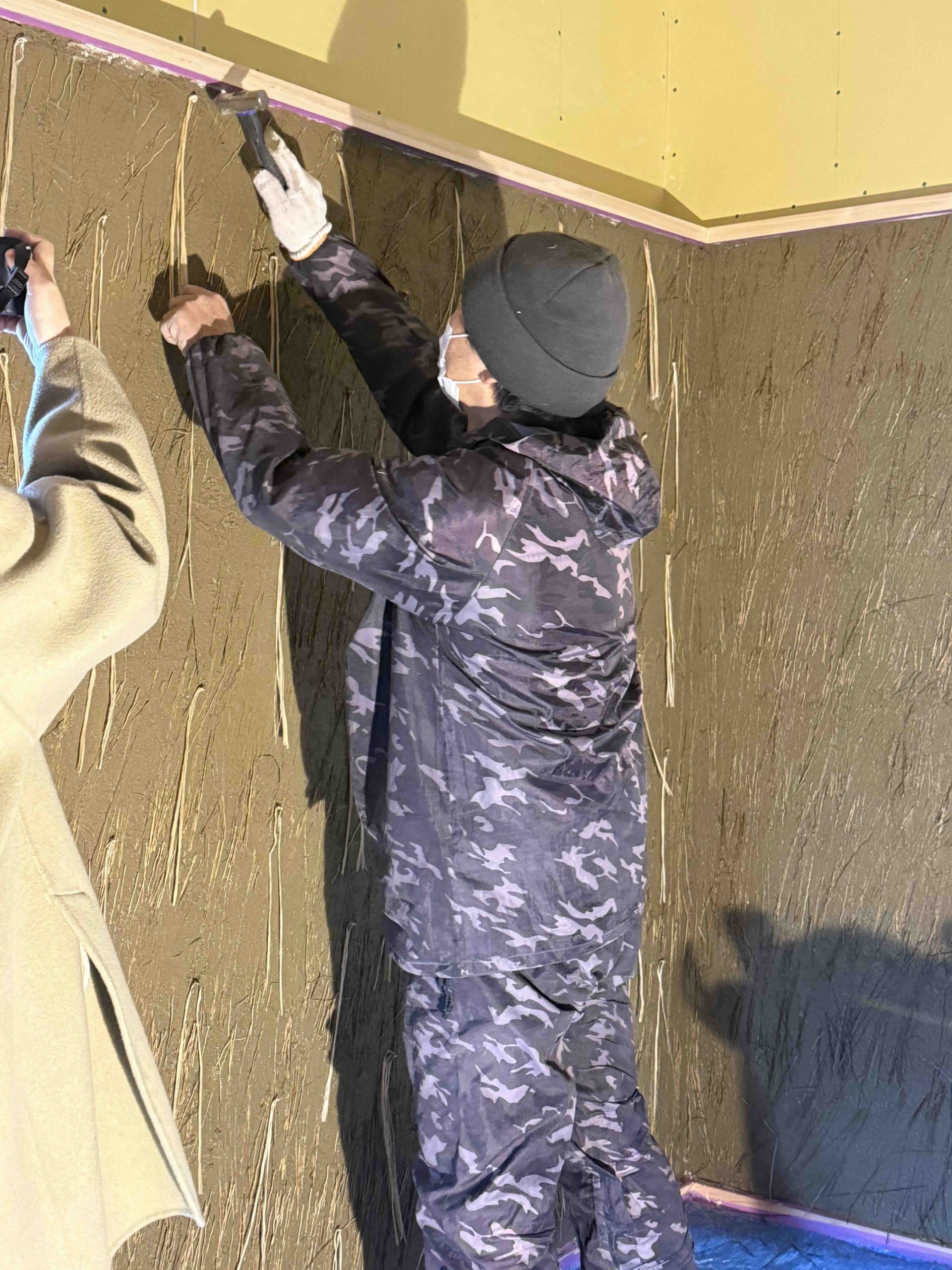 この日小沼さんが使った尺トンボは、さきちゃんの尺トンボである。100年前の解体した土をとっておいて篩にかけて、今の新しい土と混ぜて塗ったこの壁に、いろんな人の思いが詰まったさきちゃんの尺トンボが使われていることがとても嬉しい1日だった。