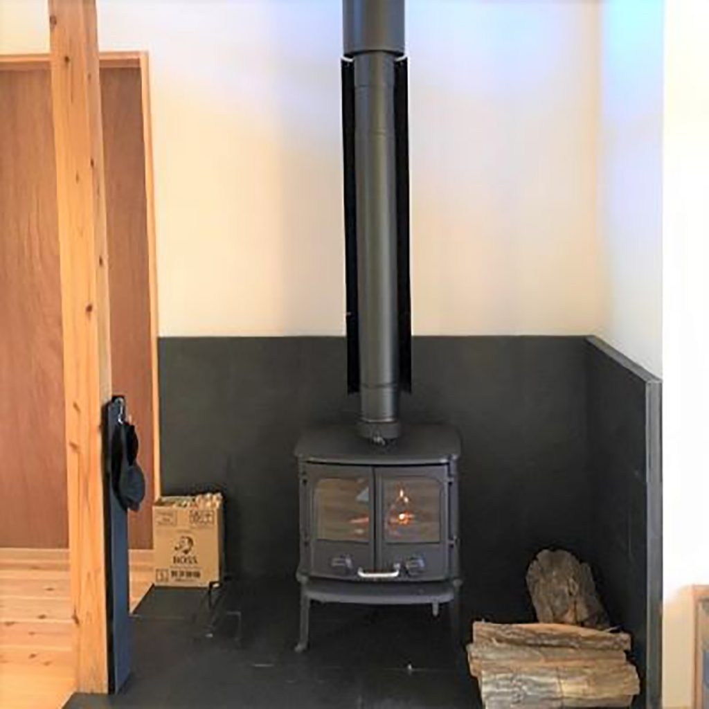 蒔きストーブの下には熱に耐えられるように金属やタイルを敷きます