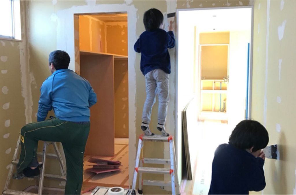 木部に優しい自然素材の塗装セルフビルドも行っています。赤ちゃんやペットにも安心して使えるほど安全性が高く、セルフビルドもお子様と一緒に体験していただけます。