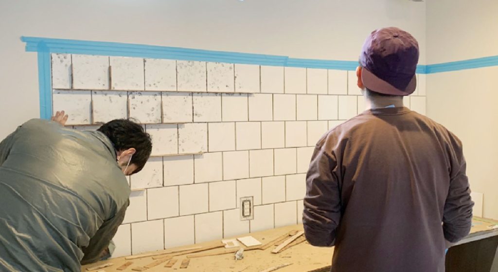 お掃除しやすいキッチンパネルを、汚れに強い目地材を併用したタイル貼りにする方も多くなっています。タイルは一般的に傷がつきにくく、単体での経年劣化による損傷はほとんどありません。長持ちするもの、組み合わせ方の自由さと手軽さから、多くの人がDIYなどで親しみを持っています。ますいいではキッチン周りの設計としてこのタイル貼りを織り交ぜたセルフビルドなどを行なっています。