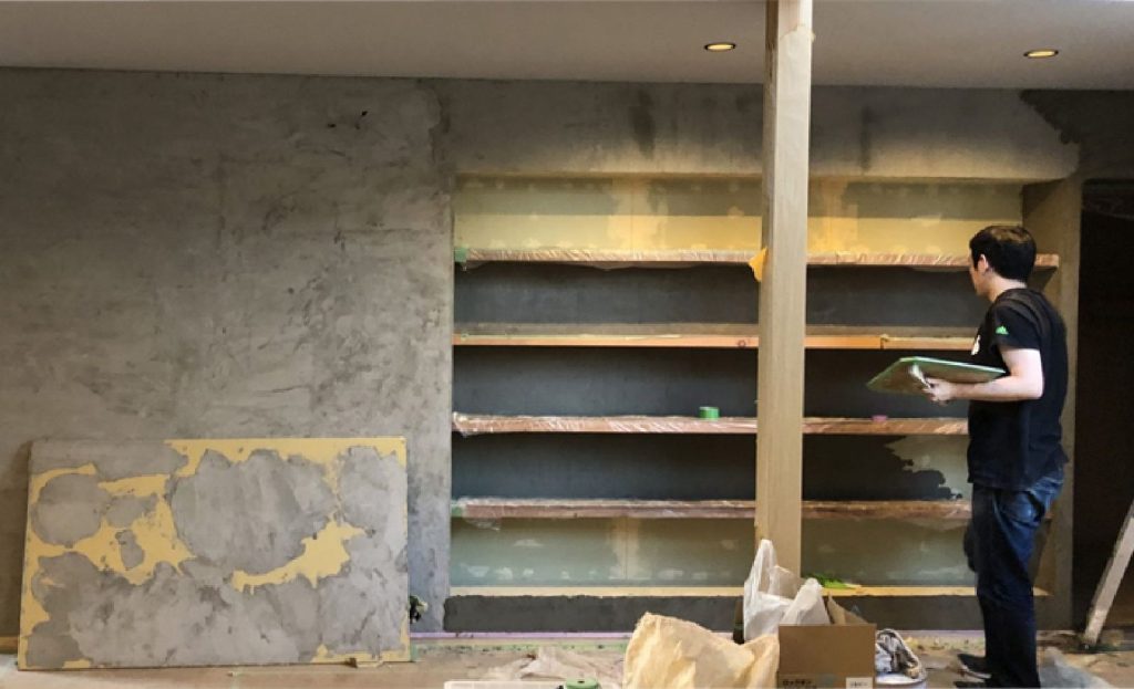 塗るときは、壁に化粧を施すように丁寧にフラットに。