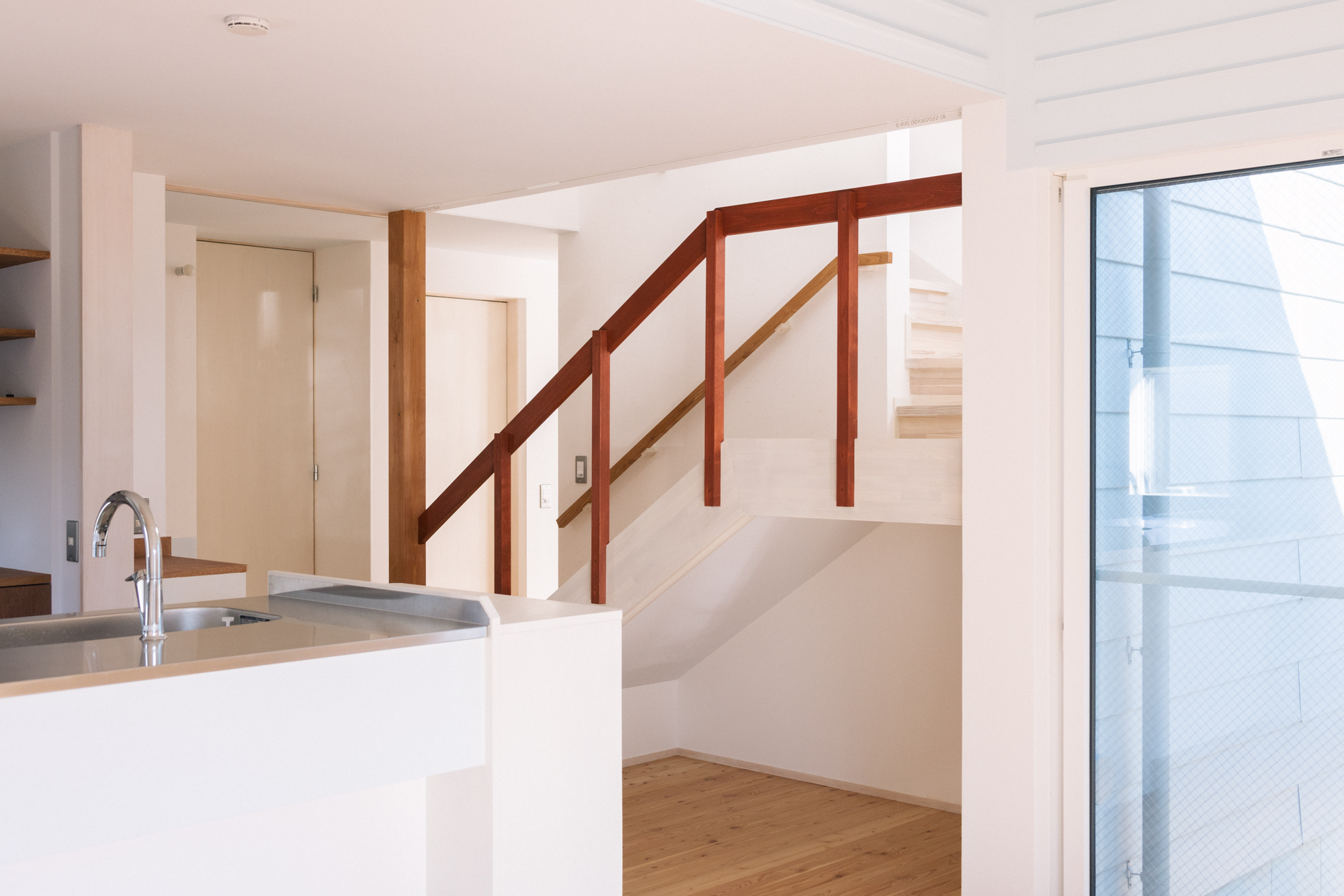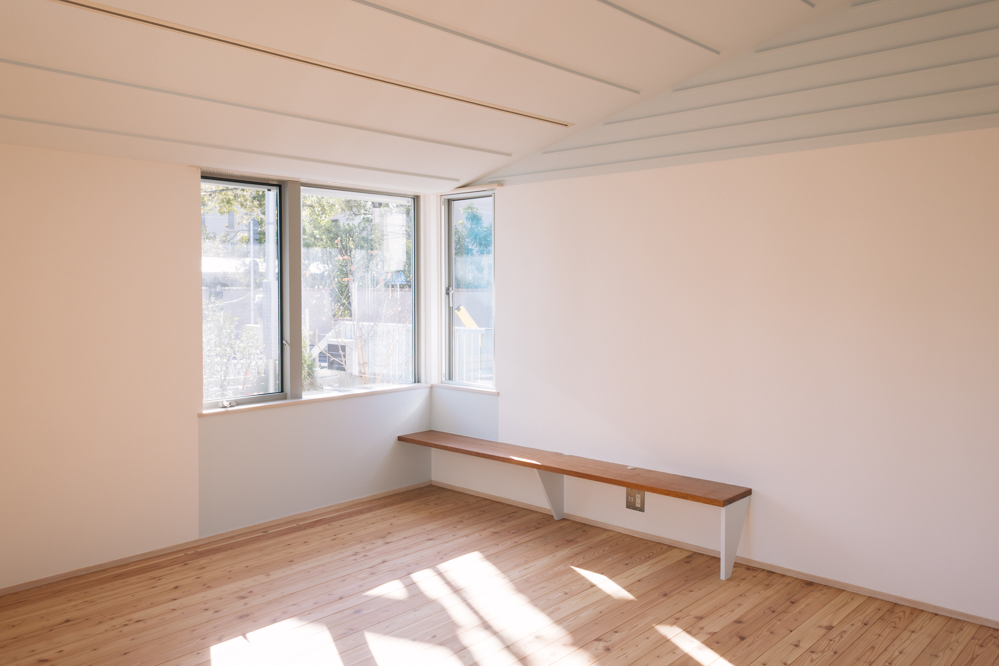 建物は切妻屋根を基本としたごく素朴な構成とし、構造を単純化することでコストを抑えつつ、断熱や開口部、内外装といった暮らしの質に直結する部分を丁寧につくり込んだ。