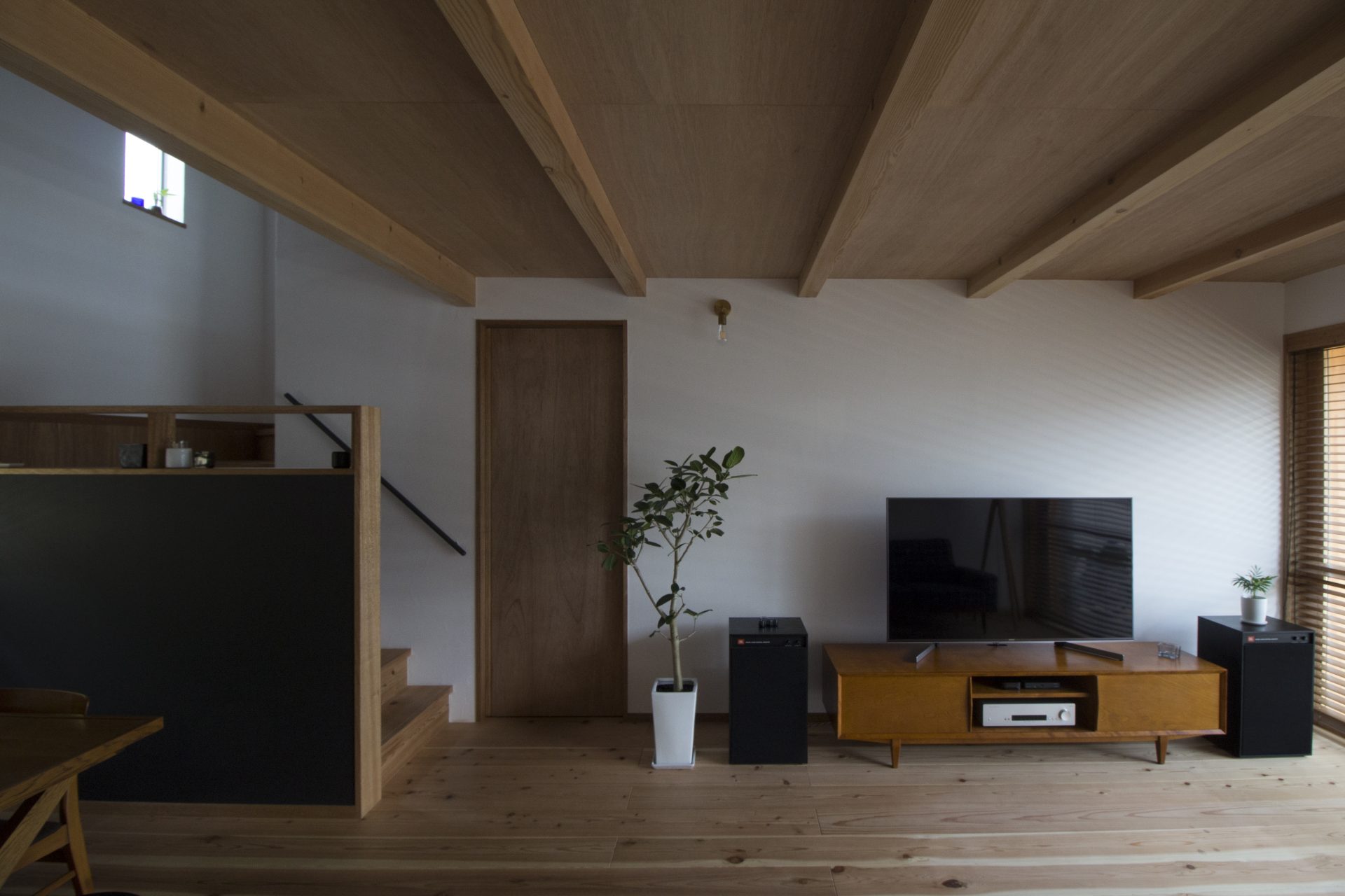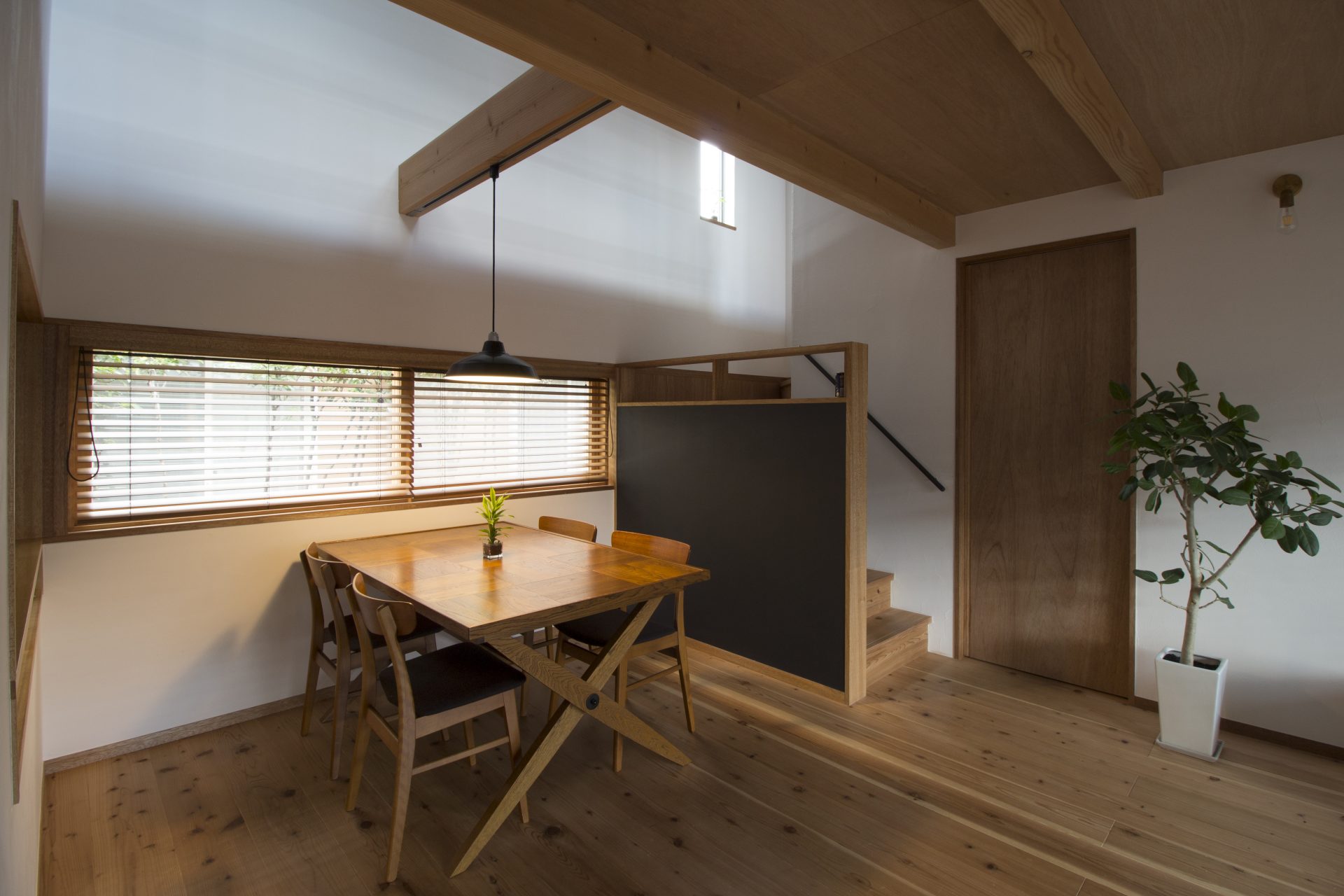 初回顔合わせの時点で概ねプランニングは決まっていたので、お施主様とのやり取りの中では主に素材や細かな納まりについての検討を重ねました。キッチンやカウンターテーブル、収納棚等は全て大工造作とし、シンプルながら既製品にはない魅力を放っています。各所の位置関係や高さの決定に配慮し、明快なプランの中にディテールの細やかさが感じられ、居心地の良さと繊細さが同居する空間になっています。