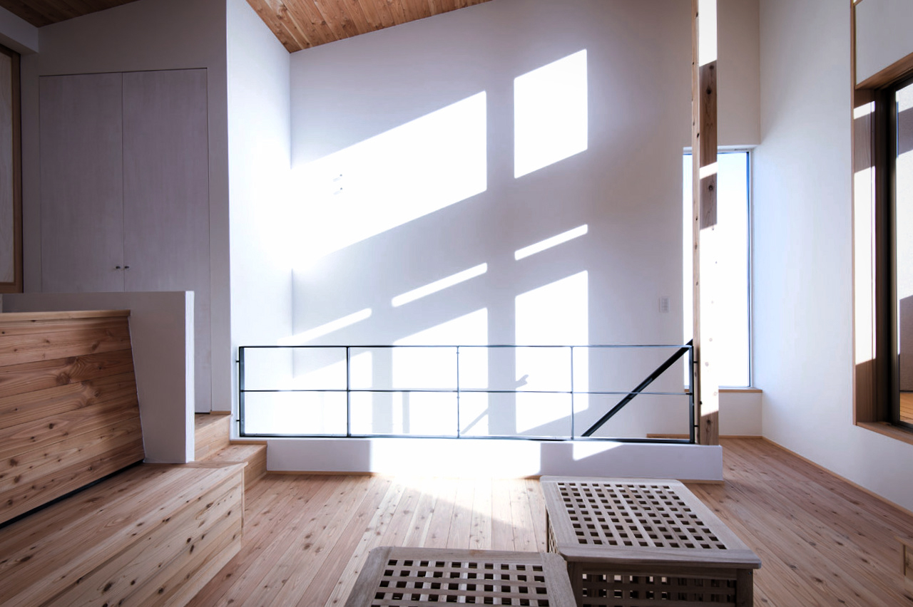 23坪のコンパクトな佇まいの2階は、潤沢な陽光と里山の景色を取り込み、