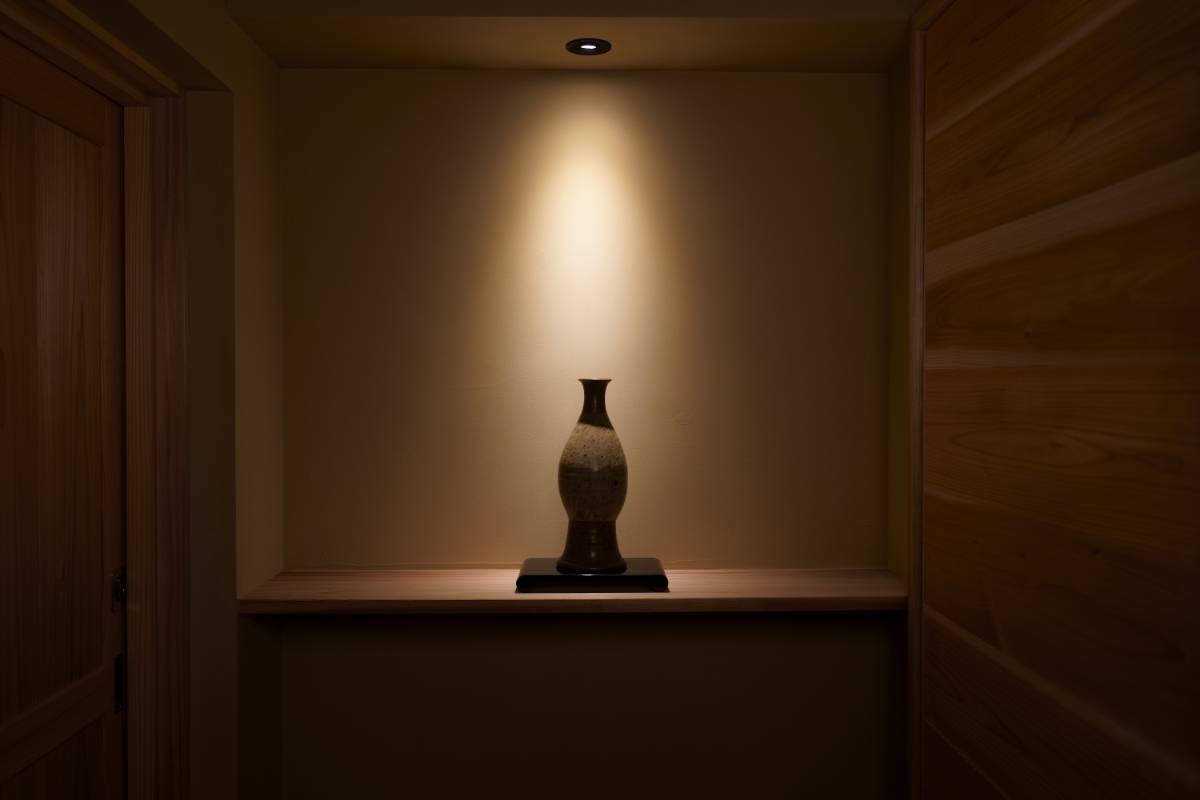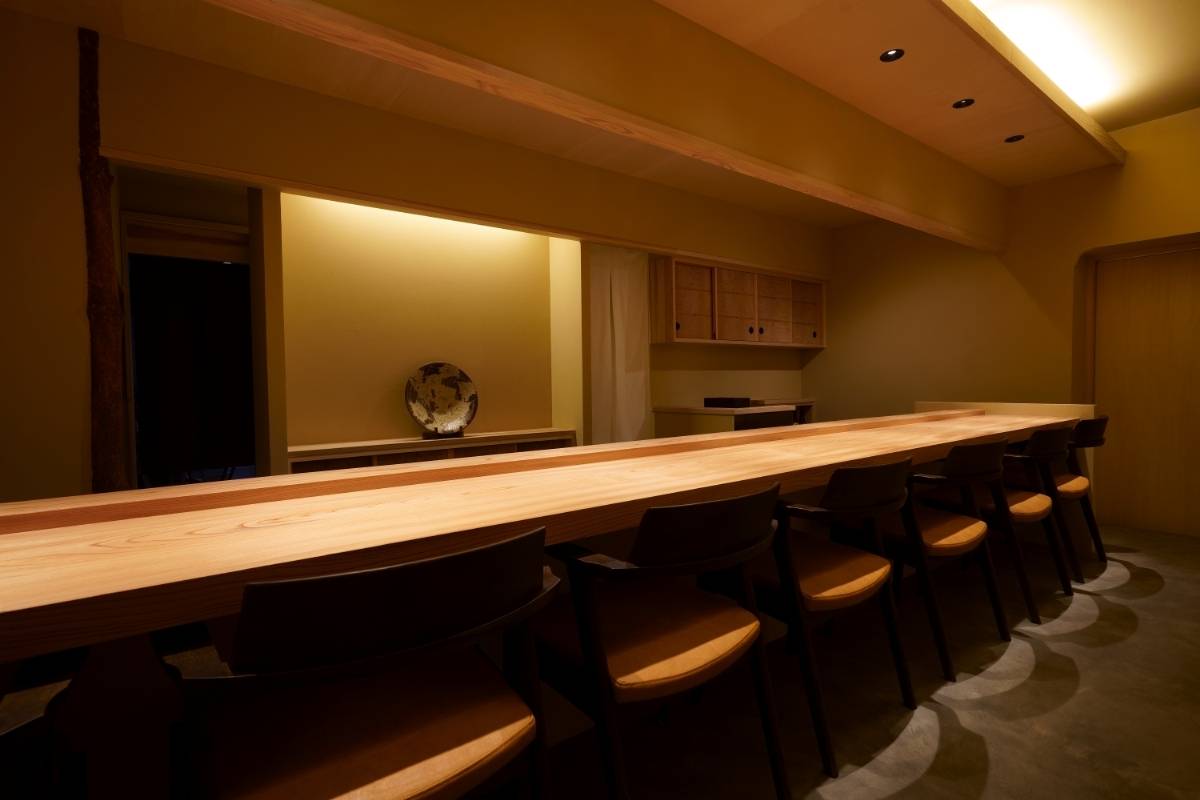 食と酒と向き合う場所をコンセプトに。五感が研ぎ澄まされる様、和のテイストと合わせながら、静けさのある空間を考えました。