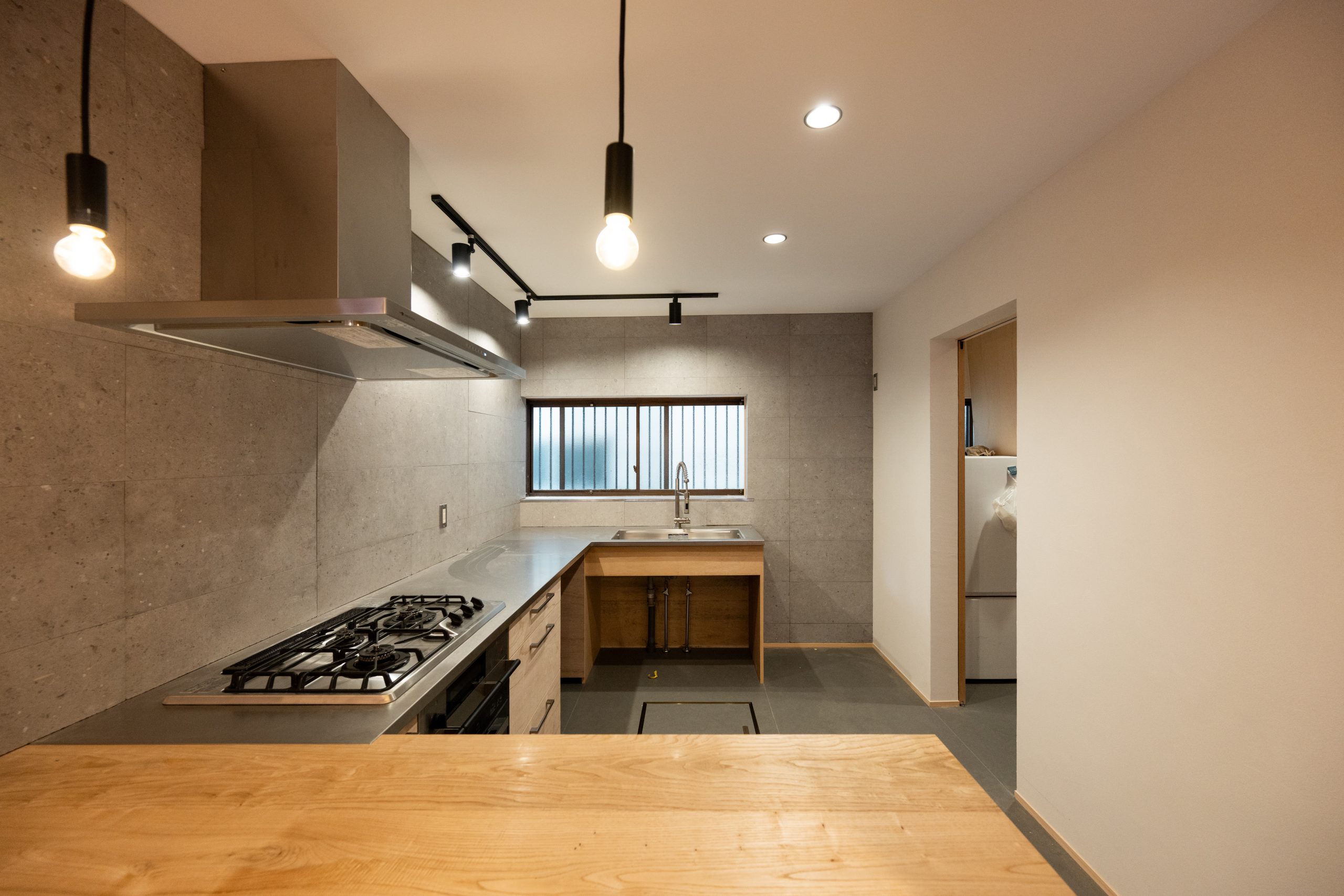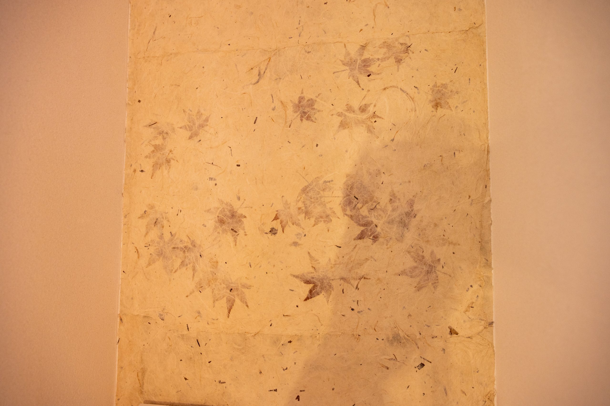 庭にあった木の葉を和紙に混ぜキッチンニッチへ貼ったり、既存の2階根太を表しにできるようにしました。